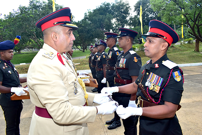 The adorning parade was graced by the Commandant of the ASL, Brigadier DIS Jayasinghe ndc psc as the Chief Guest. Upon his arrival, the Commandant was received by the Chief Instructor of the ASL Colonel MSR Mohamed Lsc. The Commandant adorned the epaulettes to the student WOs, formally signifying their assumption of duties as PO QM-Tech of the Sri Lanka Army.