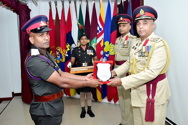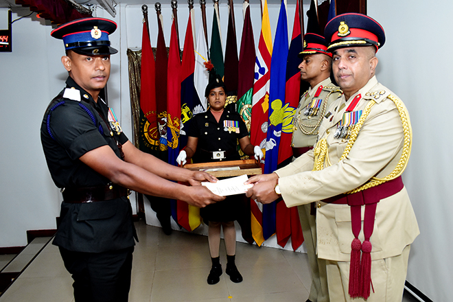 Following the adorning of insignia, the certificate awarding ceremony was conducted at the ASL with the participation of the officers of the permanent staff of the ASL and the PO QM-Techs of QMCC 08. Certificates were presented to the POs of QMCC 08 in recognition of their academic, military and professional achievements throughout the Course. Probationary Officer RMI Saman Kumara SLA distinguished himself by securing the first in order of merit of the Course, demonstrating outstanding performance and commitment.
