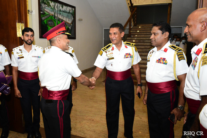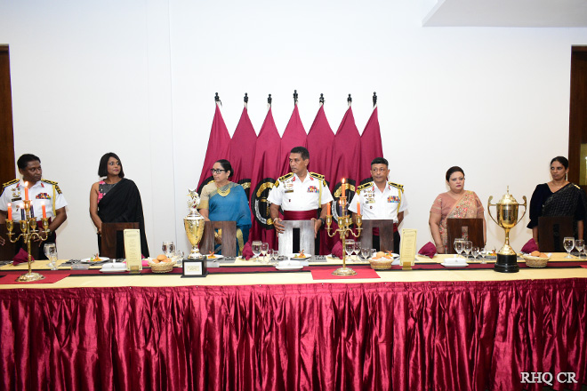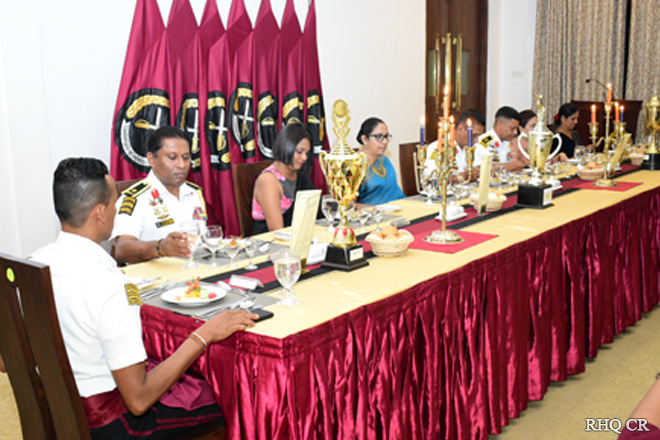 As the final segment of the day’s programme, a farewell dinner was held at the Officers’ Mess, attended by Major General K H M S Wickramaratne RSP, 1 Corps Commander and Colonel of the Regiment, Major General H D L S Perera RWP RSP ndc, General Officer Commanding 22 Infantry Division, Major General P S J D Samarasekara RSP USP ndc psc, Deputy General Officer Commanding 11 Infantry Division, Major General M R Razick RSP ndu, General Officer Commanding 57 Infantry Division, members of the Commando Council, Senior Officers and Officers of the Regiment.
