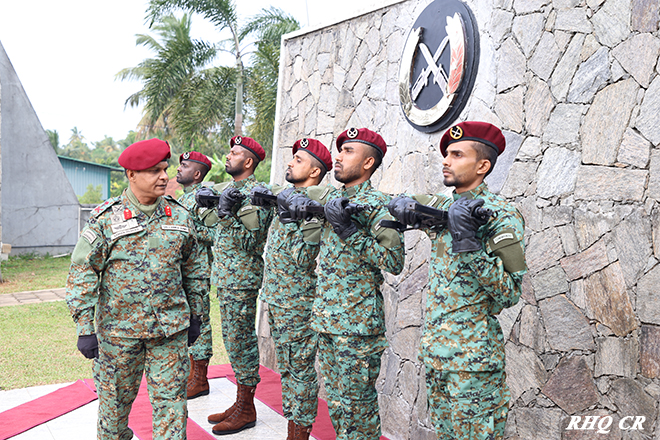 ඒ අනුව, මේජර් ජෙනරාල් ජි එස් කේ පෙරේරා ආර්එස්පි එන්ඩිසි යන ජ්යෙෂ්ඨ නිලධාරී කමාන්ඩෝ රෙජිමේන්තුවේ වැඩබලන නියෝජ්ය සේනාවිධායක වශයෙන් කටයුතු කරනු ලබන ලුතිතන් කර්නල් ඩබ්ලිව් සි සමරසිංහ ආර්එස්පි යුඑස්පි පිඑස්සි යන ජ්යෙෂ්ඨ නිලධාරි විසින් පිළිගැනීමෙන් අනතුරුව රෙජිමේන්තු මධ්යස්ථානයේදී කඳවුරු මුරයකින් සහ සම්මාන මුරයකින් ගෞරවාන්විතව පිළිගනු ලැබීය.