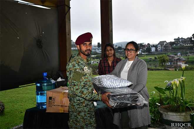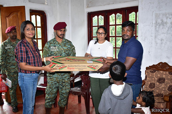 යුධෝපකරණ මාස්ටර් ජෙනරාල් සහ කමාන්ඩෝ රෙජිමේන්තුවේ රෙජිමේන්තු අධිපති මේජර් ජෙනරාල් කේඑච්එම්එස් වික්රමරත්න ආර්එස්පී ජ්යෙෂ්ඨ නිලධාරි තුමාගේ මඟ පෙන්වීම යටතේ සහ සේවාවනිතා ශාඛාවේ සභාපතිනි සමින්දි වික්රමරත්න මහත්මියගේ නායකත්වයෙන් යුතුව සේවාවනිතා ශාඛාවේ සාමාජිකයින්, මෑත කාලීනව සිදුවු සුළි කුණාටු තත්වයෙන් දැඩිසෙල පීඩාවට පත්වු සාමාජිකයින් හට සහන සැලසීම සදහා නිරික්ෂණ චාරිකාවක් හා සහන සැලසීමේ වැඩසටහනක් 2025 දෙසැම්බර් 19 වන දින පවත්වන ලදී.