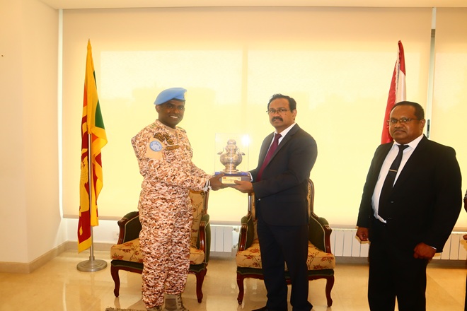 Lieutenant Colonel YSHNP Silva USP psc GR, the newly appointed Contingent Commander of Sri Lanka Force Protection Company, paid a courtesy call on HE the Ambassador of the Democratic Socialist Republic of Sri Lanka to Lebanon, Mr. Kapila Jayaweera at the Embassy Office in Beirut, Lebanon on 29 August 2025.