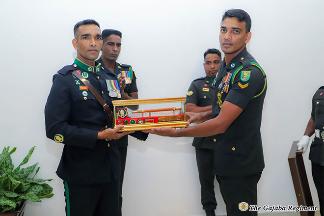 රෙජිමේන්තු සම්ප්රදායට අනුව ගජබා නිවහනේ ගෞරවනීය සහ හෘදයාංගම සමුගැනීමක් සංකේතවත් කරමින් රෙජිමේන්තු සැරයන් මේජර් කඳවුරෙන් පිටවයන ලදි.
