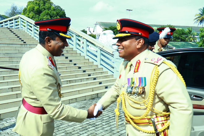 නිල උසස්වීමෙන් පසු මව් රෙජිමේන්තුවෙන් ගරුබුහුමන් ලද මේජර් ජෙනරාල් ටීඑන්කේ පෙරේරා ජ්‍යේෂ්ඨ නිලධාරී