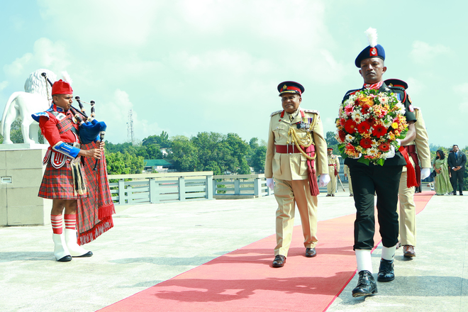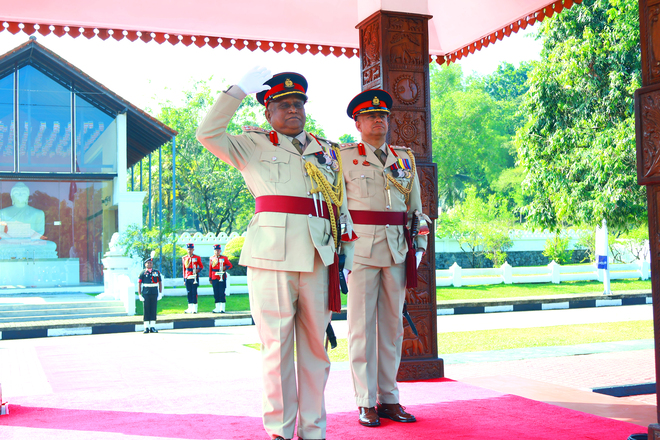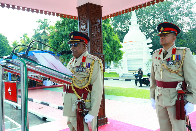 වසර 35 කට අධික යුද්ධ හමුදා සේවා කාලයක් සම්පූර්ණ කරමින් විශ්රාම දිවියට පා තැබූ ශ්රී ලංකා පාබල හමුදා රෙජිමේන්තුවට අයත් බ්රිගේඩියර් බීජේ ලේකම්ගේ ආර්එස්පී කේඑස්වී ජ්යේෂ්ඨ නිලධාරී විශ්රාම යාම නිමිත්තෙන් ගෞරවාචාරය පුදකිරීමේ උත්සවයක් 2025 නොවැම්බර් මස 21 වන දින රෙජිමේන්තු මධ්යස්ථානයේදී පවත්වන ලදී. මෙම ජ්යේෂ්ඨ නිලධාරී තම සේවා කාලය තුළ දිවයිනේ විවිධ ප්රදේශවල අණ හා මාණ්ඩලික තනතුරු රැසක් හොබවමින් ශ්රී ලංකා යුද්ධ හමුදාව වෙනුවෙන් එතුමන්ගේ විශිෂ්ට සේවය ලබාදී ඇත. විශ්රාම ගන්නා දින කඳවුරු මුරයක් පිරිනැමීමෙන් පසු මධ්යස්ථාන නියෝජ්ය සේනාවිධායක විසින් එතුමන් ආචාර පීඨීකාව වෙත කැඳවාගෙන යෑමෙන් අනතුරුව අභිමානවත් සම්මාන පෙළපාලියක් පුද කරන ලදී. සම්මාන පෙළපාලියට සහභාගී වූ සියලුම භටපිරිස් අමතා වර්ණවත් සම්මාන පෙළපාලියක් පිරිනැමීම වෙනුවෙන් තම ස්තූතිය පුදකළ මෙම ජ්යේෂ්ඨ නිලධාරී, පාබල හමුදා රණවිරු ස්මාරකය වෙත පුෂ්පෝපහාර දක්වා දේශයේ උන්නතිය වෙනුවෙන් ජීවිත පුදකරන ලද අභීත රණවිරුවන් වෙනුවෙන් තම උත්තමාචාරය පිරිනැමීමෙන් පසුව නිලධාරීන් සමගින් සමූහ ඡායාරූපයකට ද පෙනී සිටියේය. තම යුද්ධ හමුදා ජීවිතය තුළ ලබාගත් අත්දැකීම් මත පදනම්ව දැනට සේවයේ යෙදී සිටින නිලධාරීන් හා සෙසුනිලයින් හට හරවත් දේශනයක් සිදුකළ එතුමන් කොමිෂන් නොලත් නිලධාරීන්ගේ සමාජ ශාලාව තුළ පිළියෙල කරන ලද සියළු නිල තේ පැන් සංග්රහයට සහභාගීවී නිලධාරීන් හා සෙසුනිලයින් සමග සුහද පිළිසඳරකද නියැලෙන ලදී. විශ්රාම දිවියට පා තැබූ ජ්යේෂ්ඨ නිලධාරී වෙත ගෞරවාචාර පුදකිරීමේ උත්සවය සඳහා පාබල හමුදාවට අයත් ජ්යේෂ්ඨ නිලධාරීන්, මධ්යස්ථාන සේනාවිධායක ඇතුළු මාණ්ඩලික නිලධාරින්, නිලධාරින් සහ රෙජිමේන්තු සැරයන් මේජර් ප්රමුඛ සෙසුනිලයින් රැසක් සහභාගී වූහ. නික්ම යන ජ්යේෂ්ඨ නිලධාරීතුමණි, ඔබගේ ඉදිරි විශ්රාම දිවිය සර්වප්රකාරයෙන්ම සාර්ථක වේවායි ශ්රී ලංකා පාබල හමුදා රෙජිමේන්තු අධිපති ඇතුළු සියලුම නිලයින්ගේ සුබාශිංසන මෙසේ එක්කරන්නෙමු.