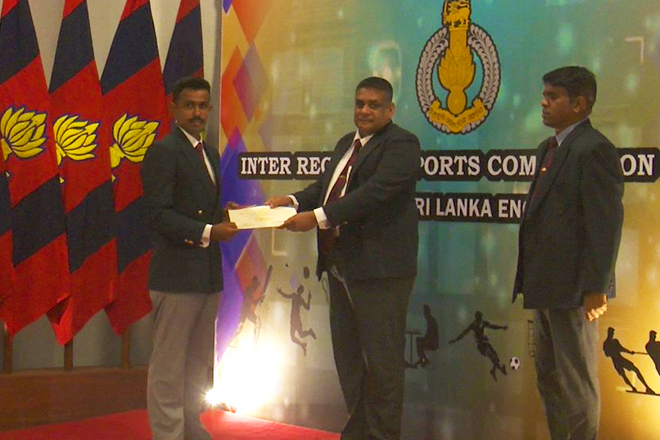 The awarding ceremony was graced by Major General DKSK Dolage USP nps psc, Chief of Staff of the Sri Lanka Army, Chairman of Army Sports Committee and Colonel Commandant of the Corps of Sri Lanka Engineers, who attended as the Chief Guest of the evening.