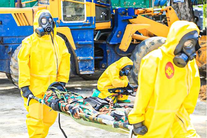 The participation of the CBRN troops reflected their skills and the abilities to adaptation of any situation. In there, they demonstrated how to response the CBRN emergency by detection, identification, reaction and rescue.