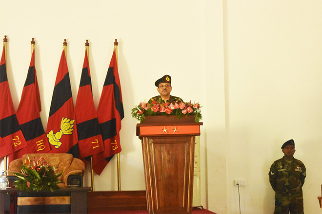 During his visit, Major General TC Peiris planted a sapling on the camp premises to commemorate the occasion. As well as addressed the troops on several key aspects of military service, while expressing the gravity of discipline and conduct as soldiers of the victorious Army. Subsequently, the Senior Officer visited around the camp premises and given certain instructions to ensure the welfare and security of the soldiers.