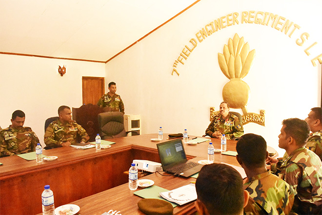 The event was further dignified by the presence along with valuable advices and directions of the Commander Plant Engineer Brigade, Colonel KASJ Kodithuwakku USP ptsc, and the visit of Chief Field Engineer of Sri Lanka Army and General Officer Commanding of Engineer Division, concluded with a appreciations of the commitments made by the unit in different engineer tasks conducted so far and instructed to achieve the high quality end state in any engineer tasks assigned to 7 Field Engineer Regiment in future.