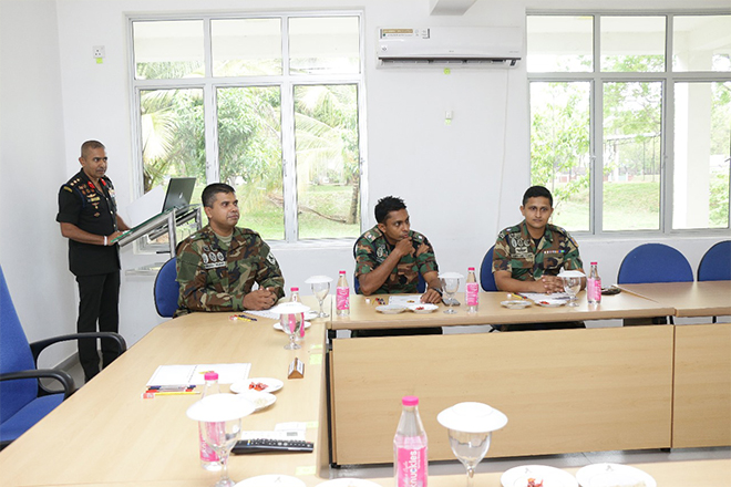 During their time at SLSME, the delegation was warmly welcomed by Colonel JACS Jagoda psc, Commandant of the School. Colonel Chamika Jagoda conducted a comprehensive briefing to familiarize the visitors with the overview of SLSME, including the diverse range of training programs delivered.