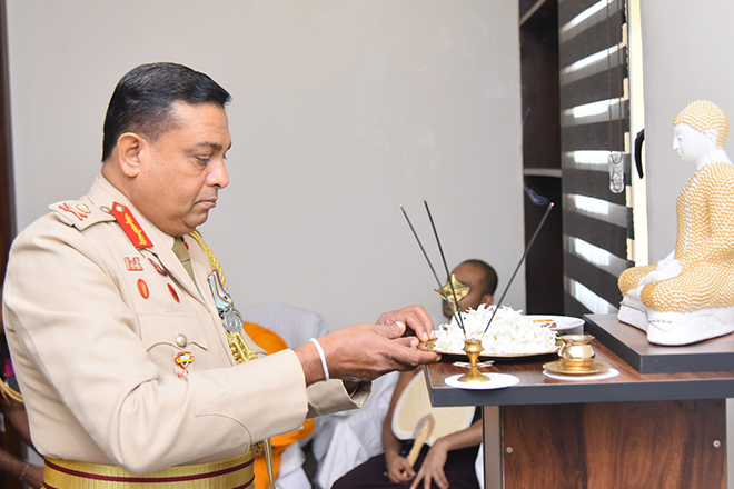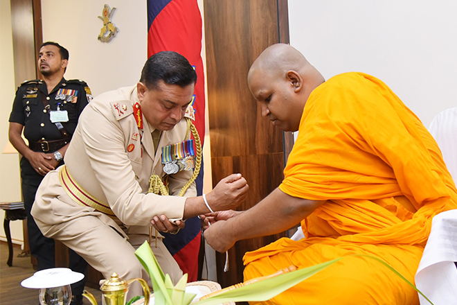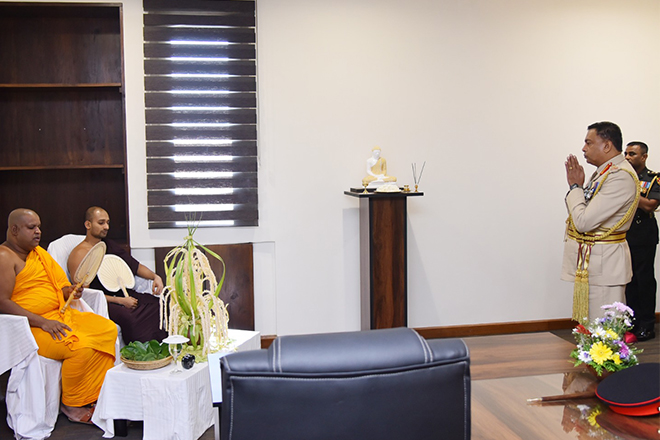 The ceremony commenced with the dignified chanting of Seth Pirith by the Maha Sangha, invoking blessings for his upcoming tenure. In a symbolic gesture of authority, Major General Kapila Dolage signed the official appointment document, marking the beginning of his responsibilities in this prestigious appointment.
