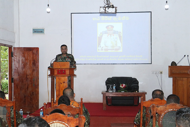 Following the formal welcome, the Commanding Officer conducted a comprehensive briefing on the regiment’s operational commitments, administrative functions, welfare initiatives, and ongoing infrastructure development projects under the Security Forces Headquarters – Jaffna.