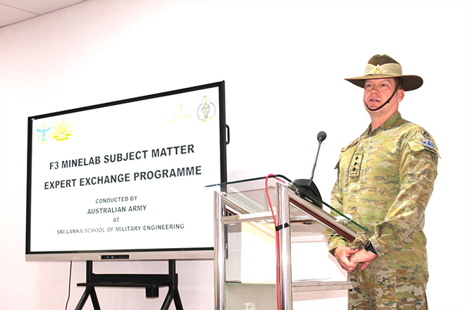 The Sri Lanka School of Military Engineering (SLSME) had the honour of hosting a distinguished delegation from the Royal Australian Engineers from the Australian Army for a comprehensive workshop on the F3 Mine Lab Detector from 8 September to 11 September 2025. The programme marked another milestone in the strong partnership between the two nations in advancing counter mine expertise and humanitarian demining efforts.