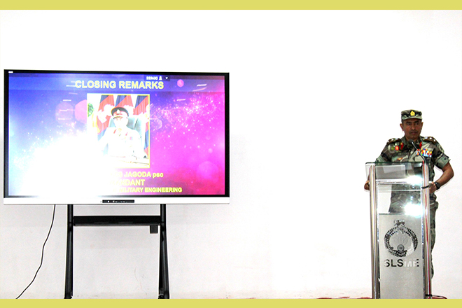 During the closing ceremony, a special address was delivered by the Defence Advisor to the Australian High Commission who emphasized the importance of continued collaboration and mutual support in the field of military engineering. Her remarks underscored the shared commitment to safety, operational readiness and humanitarian responsibility. The Defence Advisor to the Australian High Commission expressed her pride in gracing the occasion noting with distinction that she is the first Officer from the Royal Australian Engineers to visit the SLSME being the Defence Advisor. Afterwards the delegation paved a visit to the Field Engineering Model Room before concluding their visit to SLSME.