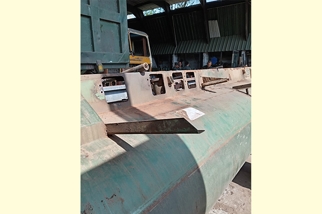 The vehicle, which had sustained extensive corrosion and wear due to prolonged operational use, was received at the workshop for major refurbishment. The bowser was fully dismantled, and all corroded and damaged body components were meticulously repaired through extensive tinkering and structural restoration work. Upon completion of the repairs, the vehicle was professionally repainted to Army standards.
