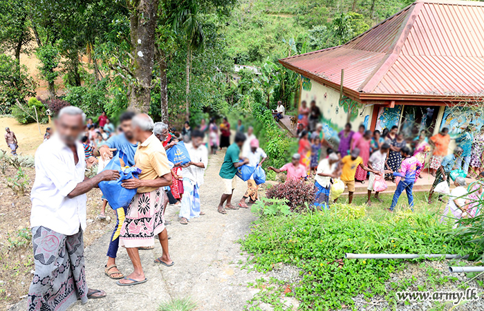 ඒ අනුව, පරිත්යාගශීලීන්ගේ සහ රෙජිමේන්තු සේවා වනිතා ශාඛාවන් විසින් ලබාදුන් එම පරිත්යාගයන් ගිනිගත්හේන, නාවලපිටිය සහ දොළොස්බාගේ යන ප්රදේශයන්හි අවතැන් වූ පවුල් 575 ක් සඳහා රුපියල් 5,000 ක් පමණ වටිනාකමකින් යුතු වියළි සලාක පාර්සල්, අත්යවශ්ය ද්රව්ය, සනීපාරක්ෂක ද්රව්ය සහ ඇඳුම් පැළඳුම් ද ලබා දෙන ලදී. මෙම පරිත්යාගයන්හි මුළු වටිනාකම දළ වශයෙන් රුපියල් මිලියන 3ක් පමණ වේ.