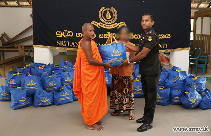 යුද්ධ හමුදා සේවා වනිතා ඒකකයේ සභාපතිනී ස්වෙන්ද්රිනි දිසානායක මහත්මියගේ මඟපෙන්වීම යටතේ, දිවයින පුරා පැවති අයහපත් කාලගුණික තත්ත්වයෙන් පීඩාවට පත් ජනතාව සඳහා වියළි සලාක බෙදා දීමේ වැඩසටහනක් 2025 දෙසැම්බර් මස 24 වන දින පවත්වන ලදී.