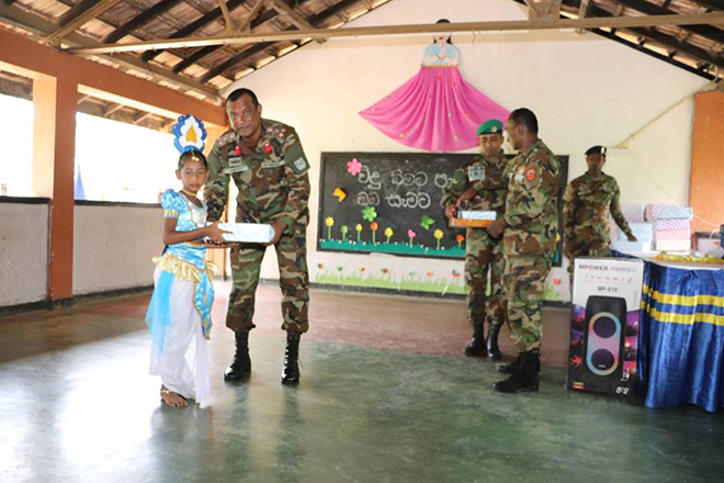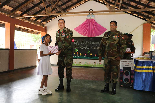 The programme took place at the main hall of Sithuminiwela primary school with colourful entertainment items by students and highlighted the armed forces’ ongoing commitment to social welfare and support for vulnerable communities.