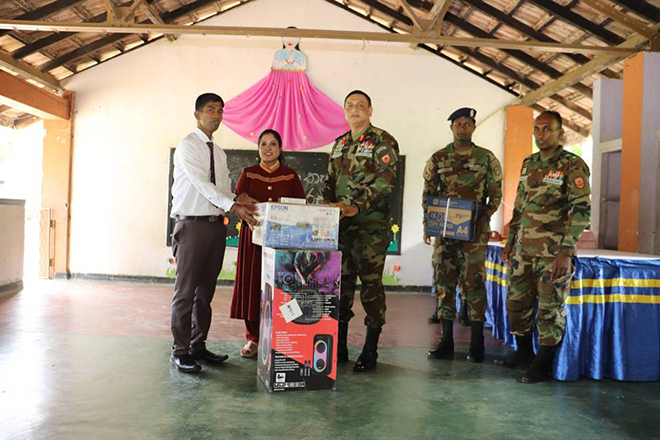 Through the generous full financial support of Dr. Jinanjala Shanika Wijayagunasekara and Mrs Asha Niroshani Lokuwithana 43 book packs and sound system were donated to students of H/Sithuminiwela Primary School under the coordination of armed forces personnel.