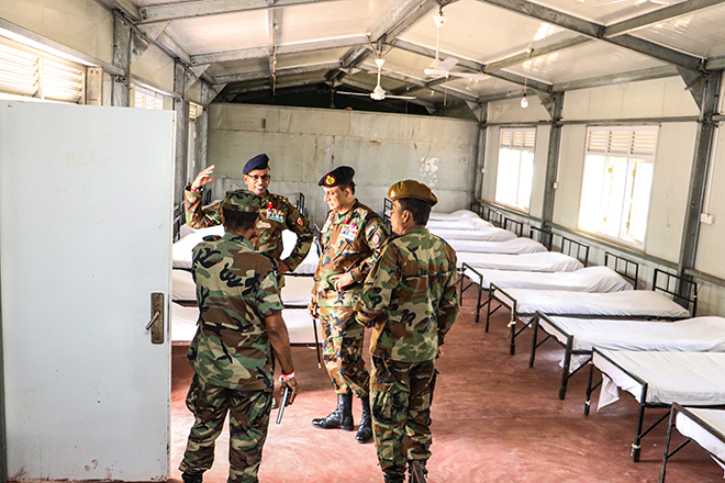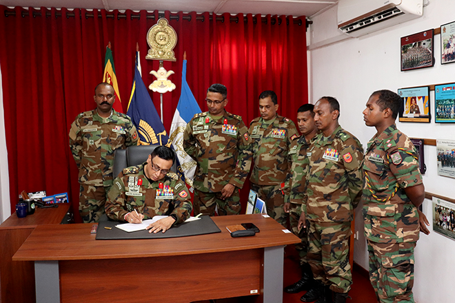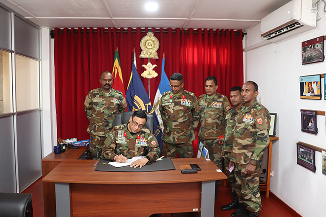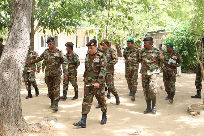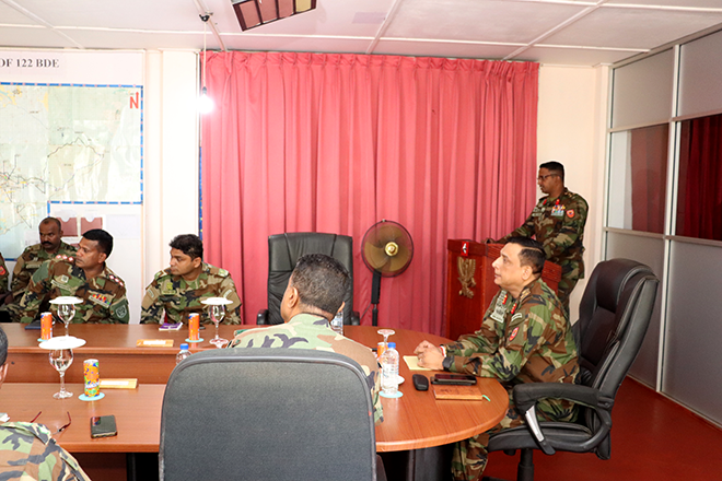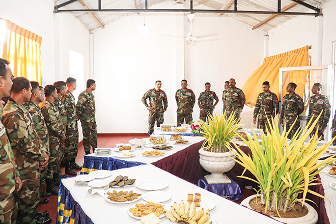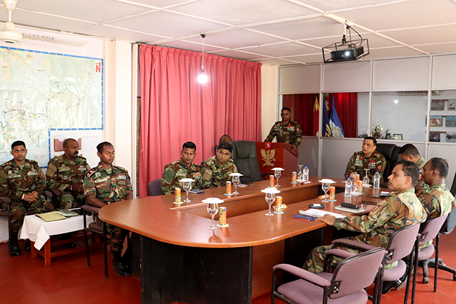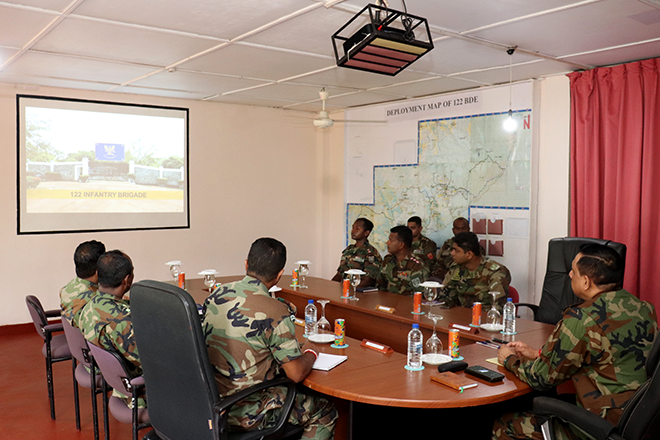 ඉන් අතනතුරුව, 122 පාබල බලසේනාවේ බලසේනාධිපති බ්රිගේඩියර් බී ඩී ටී ඩී ජයරත්න පීඑස්සී ජ්යෙෂ්ඨ නිලධාරී තුමන් විසින් බළසේනාවේ රාජකාරී ස්වභාවය පිලිබඳව සේනාංකාධිපති තුමන් හට කෙටි හැදින්වීමක් සිදුකිරීමෙන් අනතුරුව සේනාංකාධිපති විසින් භට නිවාස පරික්ෂාවකටද ලක් කිරිමෙන් පසු, එතුමන් අමුත්තන්ගේ පොතහි සමරු සටහනක් තැබු අතර, පසුව සියළු නිලයින් සහභාගිත්වයෙන් පවත්වන ලද තේ පැන් සංග්රහය සඳහාද සහභාගී විය