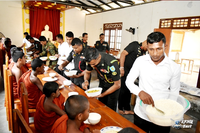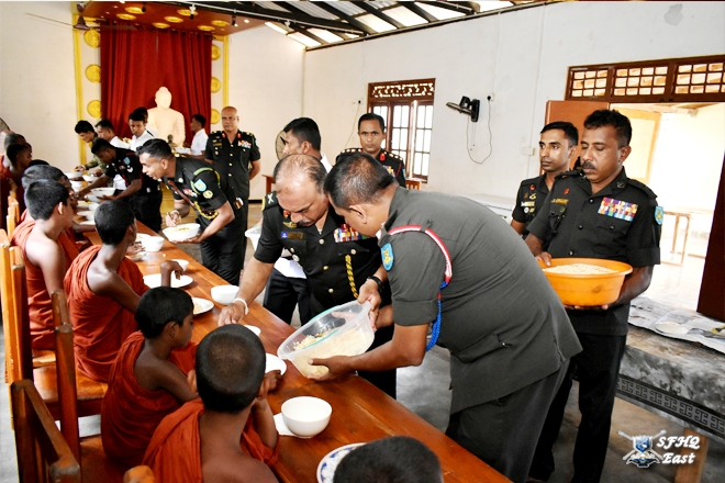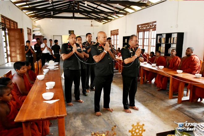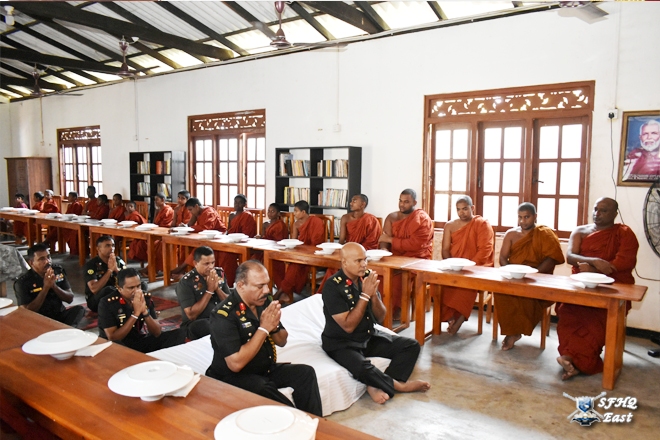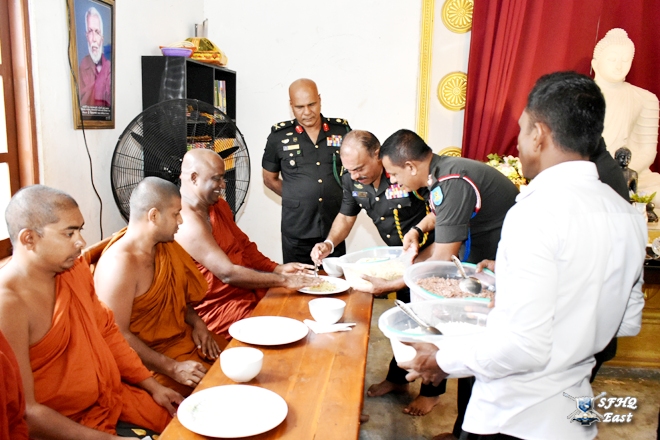 In conjunction with the NavamPura Pasalosvaka Poya Day, the Security Forces Headquarters (East) organized an Almsgiving Programme on 02 February 2026 for 24 Buddhist monks residing at the Kalkuda Siri Seelalankara Pirivena.