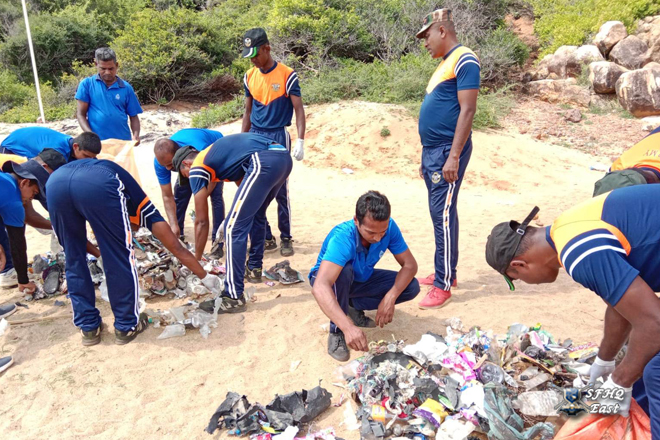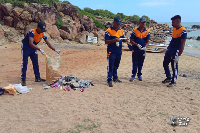 In conjunction with the 76th Army Anniversary, a clean-up program was conducted at the Arisimale beach area, on the instructions of the General Officer Commanding 22 Infantry Division and the Commander 221 Infantry Brigade, under the guidance and supervision of the Commanding Officer of 20th Battalion of the Gajaba Regiment Lt Col Rohana Ekanayake RWP RSP psc GR.