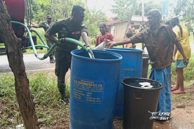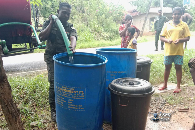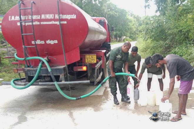 In response to the widespread power outage caused by adverse weather, the National Water Supply and Drainage Board at Lahugalawas unable to continue its regular distribution. As a result, 00 x 03 troops from the 14 Sri Lanka Sinha Regiment distributed drinking water to people in the vicinity of the Lahugala area on 07 December 2025.