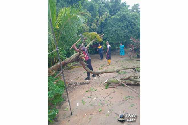 Under the guidance of Commander, Security Force – East, Major General JSBW Pallekumbura RWP RSP Bde psc, the Officers and Other Ranks of this Security Forces Headquarters are currently engaged in removing the fallen trees within the camp area caused by the heavy rains, and in restoring the affected locations to their original condition.