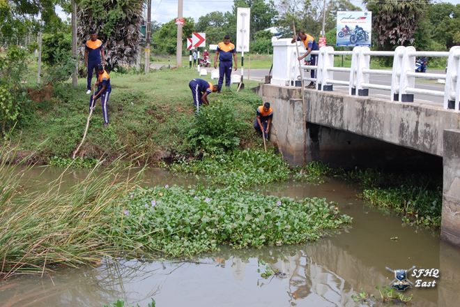Due to the adverse weather conditions that affected the island and caused flooding, debris that had been trapped in the drain where the water recedes along the Sagama road in the Kanchirankuda area was removed on 10 December 2025 with the participation of a team of 00 x 06 troops from the 8 Sri Lanka National Guard.