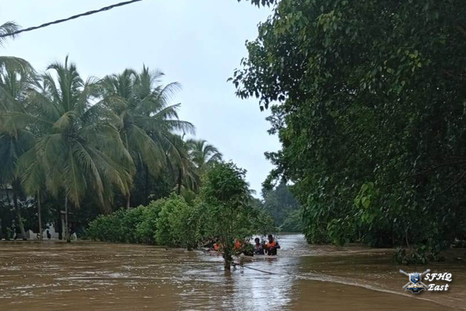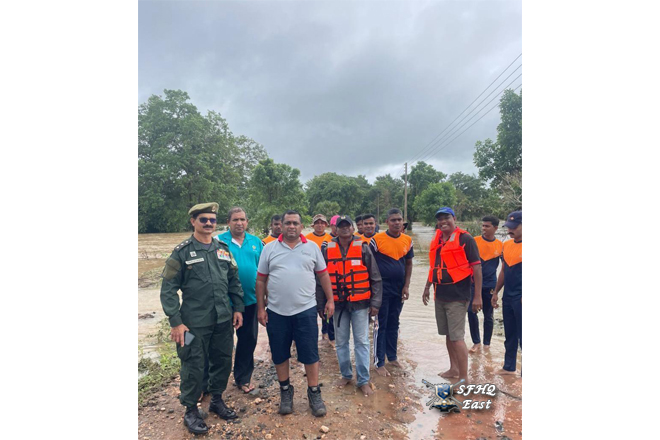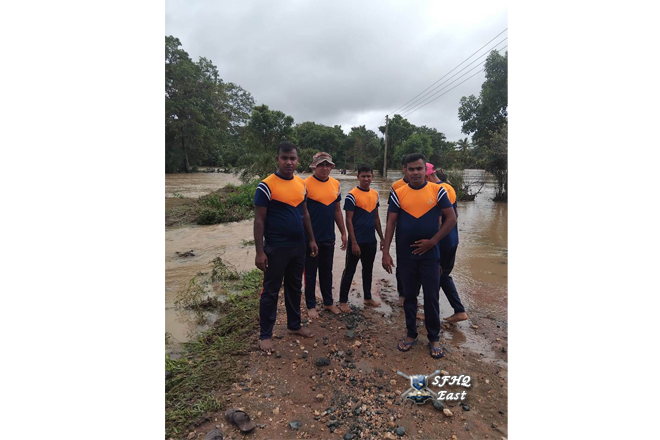 Due to heavy rainfall, a severe flood situation was reported in the Asirigama village, which falls under the Palugaswewa Divisional Secretariat area of the SFHQ (E) region. As a result, a number of villagers were affected by the floods. Accordingly, a team of 01 x 12 troops from the 5th Sri Lanka Army Medical Corps was deployed to rescue the affected civilians on 28 November 2025.