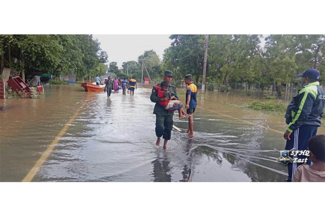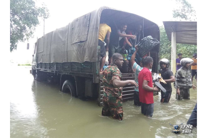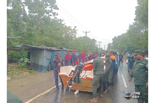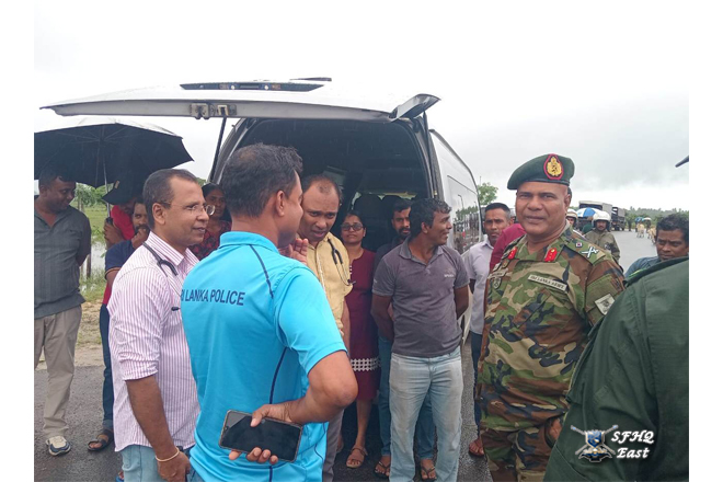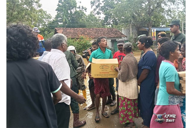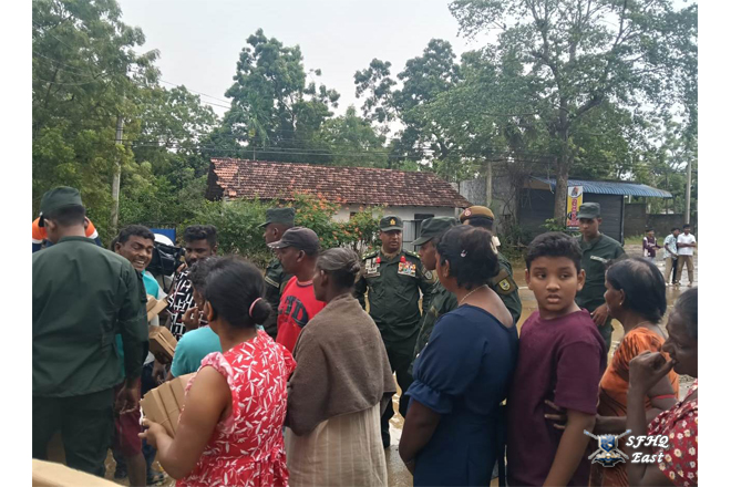 The Security Forces – East, under the guidance of the Senior Officer Commanding 23 Infantry Division, Major General G.P.P. Kulathilaka ndc, deployed 03 x 39 troops of the 7th Light Artillery Regiment, who actively contributed to the relief operations carried out in response to the disasters caused by the heavy rains that affected the area under the 23 Infantry Division.