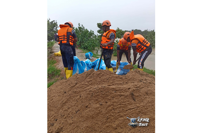 Due to adverse weather conditions, a team of 1×25 troops from the 14th Sri Lanka Sinha Regiment was deployed to the left bank of the Duuwe Aru in the Pottuvil–Ulla area, which falls under the 24 Infantry Division of the SFHQ (E). The team carried out work to minimize damage to the riverbank by constructing a sand-filled barrier to prevent further erosion.