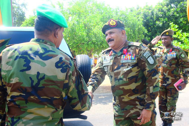 ආරක්ෂක සේනා (නැගෙනහිර) ආඥාපති මේජර් ජෙනරාල් ජේඒස්බිඩබ්ලව් පල්ලේකුඹුර ආර්ඩබ්ලිවිපි ආර්එස්පි එන්ඩියු පිඑස්සි ජ්යෙෂ්ඨ නිලධාරිගේ මග පෙන්විම යටතේ