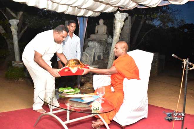 පොසොන් පොහොය සැමරීම සඳහා නැගෙනහිර ආරක්ෂක සේනා මූලස්ථානයේ බෝධි පූජාවක් සහ ධර්ම දේශනාවක් සංවිධානය කරන ලදී. මෙම අවස්ථාවට ජ්යෙෂ්ඨ සහ කනිෂ්ඨ මාණ්ඩලික නිලධාරීන්, අනෙකුත් නිලයන් සහ සිවිල් සේවකයින් සහභාගී විය. මෙම විශේෂ අවස්ථාව සඳහා, පූජ්ය දෙල්විට මෙත්තකංකර හිමියන්ට ධර්ම දේශනාව සදහා ආරාධනා කරනු ලැබු අතර උත්සවය ප්රධාන අරමුණු කිහිපයක් ඉටු කළේය