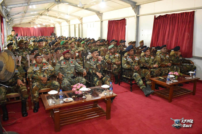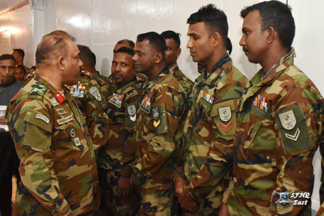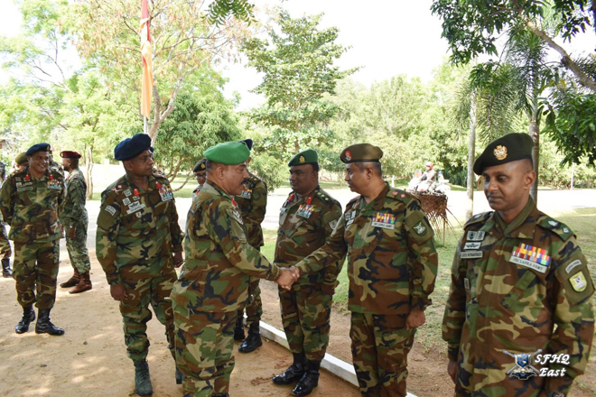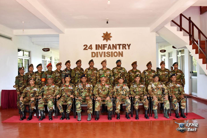 24 පාබල සේනාංකයේ සේනාංකාධිපති මේජර් ජෙනරාල් එච්.සී.එල්. ගලප්පත්ති ආර්එස්පී යූඑස්පී යන ජ්යෙෂ්ඨ නිලධාරී ඇතුළු සියලුම නිලධාරීන් විසින් ආරක්ෂක සේනා (නැගෙනහිර) ආඥාපති මේජර් ජෙනරාල් ජනක පල්ලේකුඹුර ආර්ඩබ්ලිව්පී ආර්එස්පී එන්ඩියු පීඑස්සී යන ජ්යෙෂ්ඨ නිලධාරී හමුදා සම්ප්රදායන්ට අනුකූලව සම්මාන මුරයක් පිරිනමමින් උණුසුම් ලෙස පිළිගැනීමෙන් පසු සමූහ ඡායාරූපයකට පෙනී සිටියේය.