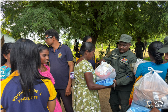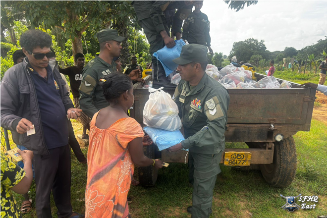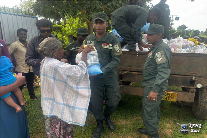 ආරක්ෂක සේනා (නැගෙනහිර) ආඥාපති සහ 23 වන සේනාංකායේ සේනාංකාධිපතිගේ මඟ පෙන්වීම යටතේ සහ 232 පාබල බලසේනාවේ බලසේනාධිපති සහ 12 වන බලඇණිය ශ්රී ලංකා ජාතික ආරක්ෂක බළමුළුවේ අණදෙන නිලධාරියාගේ මගපෙන්විම යටතේ, 12 වන බලඇණියේ දෙවන අණදෙන නිලධාරියාගේ පූර්ණ අධීක්ෂණය මත පසුගිය දිනවල දිවයින පුරා පැවති අයහපත් කාලගුණික තත්ත්වයන් හේතුවෙන්, ආපදාවට ලක්වු එම ඒකක සී කණ්ඩායම් බලප්රදේශයට අයත් කුඩුම්බිමලෙයි ග්රාම නිලධාරී කොට්ඨාශය යටතේ ඇති කුඩුම්බිමලෙයි ගම්මානයේ පදිංචි පීඩාවට පත් පවුල් 150 ක් සඳහා වියළි සලාක බෙදා හැරීමේ වැඩසටහනක් පවත්වන ලදී. මෙම අවස්ථාවට ඒකකයෙන් 1 x 04 ක භට පිරිසක් සහභාගී වූහ.