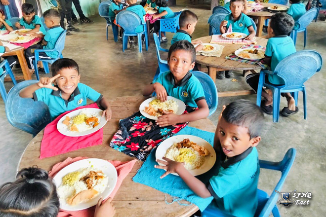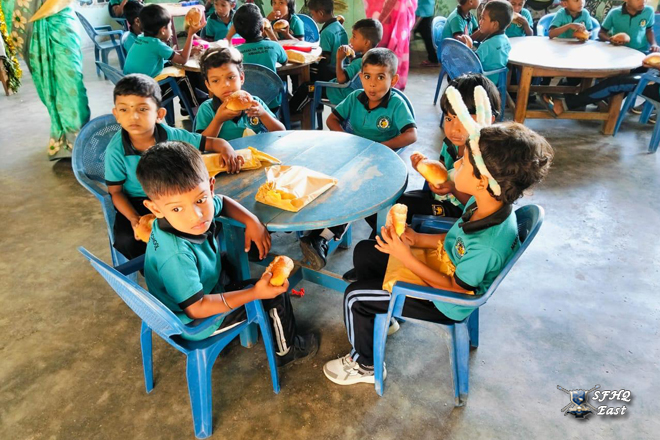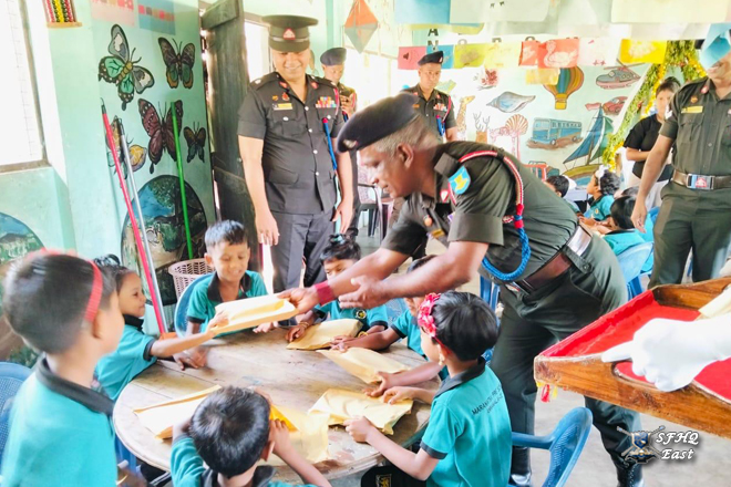 243 පාබල බළසේනා මුලස්ථානය යටතේ ස්ථාපිත 16 වන ශ්රිලංකා ජාතික ආරක්ෂක බළමුළුවේ අණදෙන නිළධාරි මේජර් ආර් පී ද සොයිසා ජ්යෙෂ්ඨ නිළධාරිගේ උපදෙසa හා මගපෙන්විම යටතේ මෙම ඒකකයේ මූලස්ථාන කණ්ඩායම විසින් මරනාතා පෙර පාසලේ ඉගෙනුම ලබන ළමුන් 35 දෙනෙකු සදහා ලෝක ළමා දිනයට සමගාමිව 2025 ඔක්තෝබර් මස 01 වන දින දිවා ආහාර වේලක් සහ පාසල් උපකරණ බෙදාදීමේ වැඩසටහනක් මෙම ඒකක නි/සෙනින් 01X10 දෙනෙකුගේ සහභාගිත්වයෙන් යුතුව සිදුකරන ලදී
