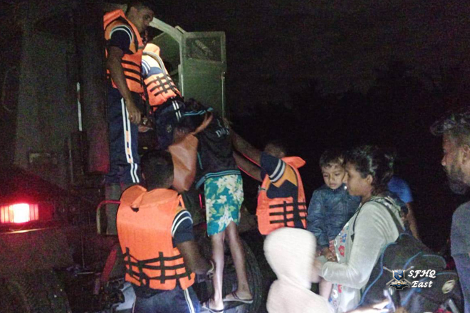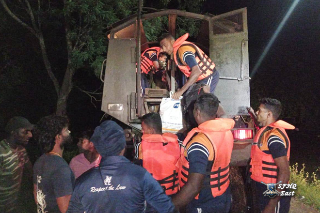 ආරක්ෂක සේනා මුලස්ථානය (නැගෙනහිර) බල ප්‍රෙද්ශයේ පිහිටි 22 වන පාබල සේනාංකයට අයත් 222 බලසේනා මුලස්ථානයේ 01 x 05 භඨ පිරිසක් විසින් අයහපත් කලගුණය හෙතුවෙන් නිළපොල සහ සෝමපුර ගම්මානයන් තුල ගංවතුරට මැදිවි සිටි සිවිල් වැසියන් පිරිසක් යුනිබෆල් ආධාරයෙන් මුදවා ගෙන ආරක්ෂිත ස්ථාන වෙත යොමුකරන ලදි.