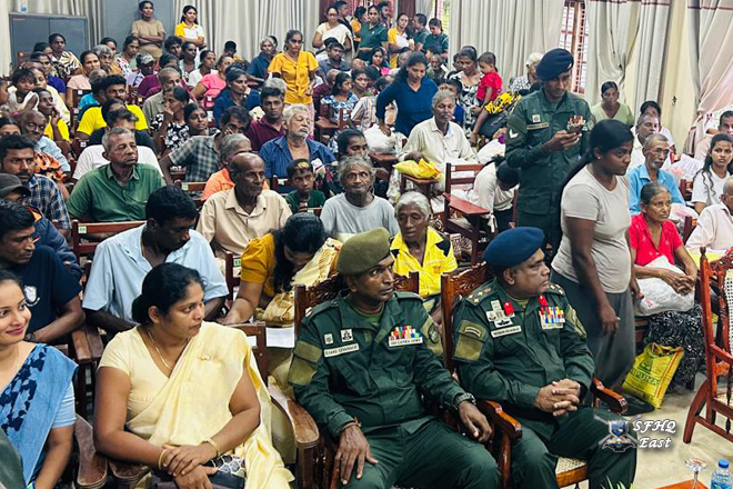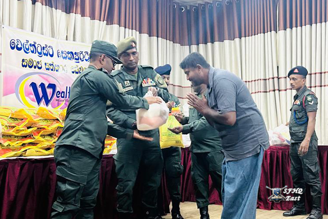 24 වන පාබල සේනාංකයේ සේනාකාධිපති මේජර් ජෙනරාල් කේඩබ්ලිව් ජයවීර යූඑස්පී පීඑස්සී යන ජ්යෙෂ්ඨ නිලධාරි තුමන්ගේ මඟ පෙන්වීම ඇතිව 242 පාබල බලසේනා බලසේනාධිපති බ්රිගේඩියර් කේජීඒටී කැලැකෝරලේ ආර්එස්පී ජ්යෙෂ්ඨ නිලධාරි සහාය ඇතිව දමන ප්රදේශවල ගංවතුරෙන් පීඩාවට පත් පවුල් 100ක් සඳහා වියළි සලාක පැකට් ප්රවාහනය කිරීම ආරම්භ කළේය. මෙම වැඩසටහන 2025 දෙසැම්බර් 04 වන දින 0800 පැයට ආරම්භ විය. 242 පාබල බලසේනා බලසේනාධිපති බ්රිගේඩියර් කේජීඒටී කැලැකෝරලේ ආර්එස්පීජ්යෙෂ්ඨ නිලධාරි තුමන් සහ 02 × 10 කභළු පිරිස් ප්රමාණයක් මෙම අවස්ථාවට සහභාගී වූහ.