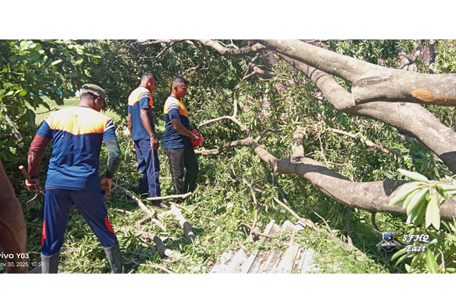 2025 නොවැම්බර් 30 වන දින මඩකලපුවේ සිංහල මහා විද්යාලයේ වහලය මතට කඩා වැටුණු ගසක් ඉවත් කිරීම සඳහා 11 (සෙව්) ශ්රී ලංකා සිංහ රෙජිමේන්තුවේ 00X12 භට පිරිසක් 243 පාබල බලසේනාවේ උපදේස් හා මගපෙන්විම යටතේ සහාය දැක්වීම සඳහා වහාම යොදවන ලදී. කඩා වැටුණු ගස විදුහලේ ගොඩනැගිලි වලට හා අවට ප්රදේශයට හනියක් නොවන පරිදි භඨ පිරිස් විසින් මහත් පරිශ්රමයක් දරා ආරක්ෂිතව ඉවත් කරන ලදි