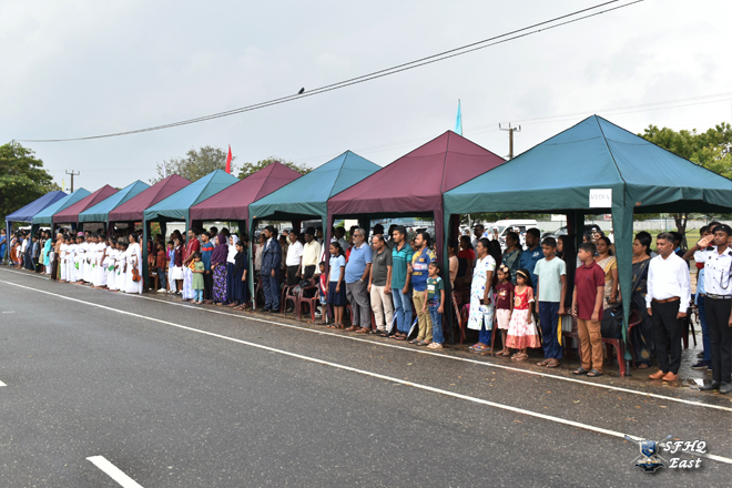 ආරක්ෂක සේනා මූලස්ථානය (නැගෙනහිර) ආඥාපති මේජර් ජෙනරාල් ජේඑස්බීඩබ්ලිව් පල්ලකුඹුර ආර්ඩබ්ලිව්පී ආර්එස්පී එන්ඩියු පිඑස්සී ජ්යෙෂ්ඨ නිලධාරී සහ ත්රිවිධ හමුදාවේ ජ්යෙෂ්ඨ නිලධාරීන් සහභාගී විය.