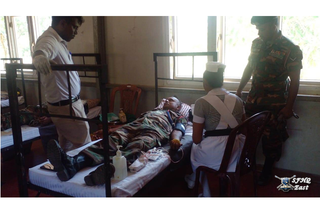 රටෙහි සාමය උදා කිරිම වෙනුවෙන් ජිවිත කැපකල ශ්රි ලාංකිකයන් උදෙසා 2025.05.19 සිට 2025.06.19 දක්වා සිදුකරනු ලබන රණවිරු සැමරුම් මාසයට සමගාමිව රට තුළ සිදුවන රථ වාහනසහ වෙනත්හදිසි අනතුරු මෙන්ම විවිධ රෝගාබාධයන් හේතුවෙන් ප්රතිකාර ගනු ලබන රෝගින් සඳහා හදිසි අවස්ථාවන්හිදි රුධිර ලබාදිම වෙනුවෙන් ලේ සංචිත පවත්වා ගැනිම රුධිර පාරවිලයන මධ්යස්ථාන වෙතින් සිදුකරනු ලබයි. එම මධ්යස්ථානයන් තුළ පවතින ලේ සංචිතයන්හි ඌණතාවය ඇතිවන අවස්ථාවන්හිදි එම ලේ සංචිත ප්රමාණවත් පරිදි පවත්වා ගැනිමට දායකත්වය ශ්රී ලංකා යුද්ධ හමුඳාව වෙතින් ලබාදෙන අතර, මෙම පාබසේමු හා යටතේ පාලනය වන 12 ශ්රිලංජාආබමු ඒකකයේ රාජකාරි නියුතු නිලධාරි/ සෙසුනිලයින් සහභාගිත්වයෙන් යුතුව ලේ දන්දිමේ වැඩසටහනක් ප්රාදේශිය රුධිර පාරවිලයන මධ්යස්ථානය මඩකලපුව සමග සම්බන්ධතාවයෙන් යුතුව 2025.06.09 වන 0900 පැයේ සිට 1600 පැය දක්වා ඒකක මුලස්ථානය පෙරියවඩිඩුවාන් කඳවුරේදි සිදුකල අතර, මෙම කාර්යය සදහා ආරක්ෂක සේනා මුලස්ථානය නැගෙනහිර ආඥාපති තුමන්ගේ මග පෙන්වීම යටතේ 23 වන පාබල සේනාංකයේ සේනාංකාධිපති තුමාගේ උපදෙස් අනුව 232 පාබල බලසේනාවේ බළසේනාධිපති තුමන්ගේද සෘජු අධික්ෂණය යටතේ 12 ශ්රිලංජාආබමු ඒකකයේ අණදෙන නිලධාරිගේ සංවිධානයෙන් සිදුකරන ලදි