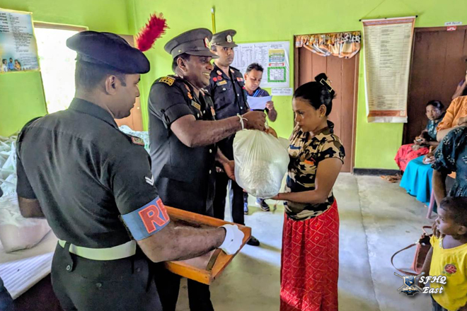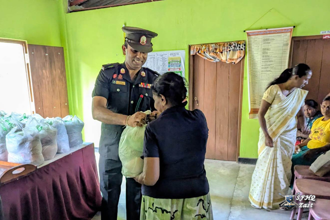 12 වන ගැමුණු හේවා බළඇණිය අණදෙන නිලධාරි ලුතිනන් කර්නල් සංජය රණසිංහ ආර්ඩබ්ලිව්පි ආර්එස්පි යුඑස්පි ජ්යෙෂ්ඨ නිලධාරි තුමාන්ගේ ප්රධානත්වයෙන් අඩු අදායම්ලභි පවුල් 80 ක් සදහා වියළි සලක මළු බෙදා දිමේ වැඩසටහනක් 2025/08/11 වන දින පැවැත්වුහ.