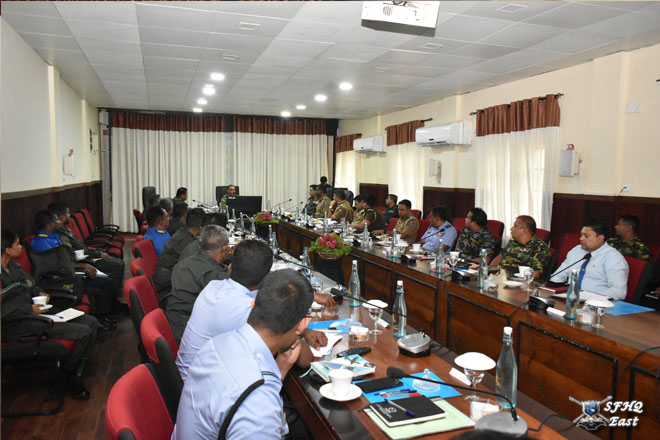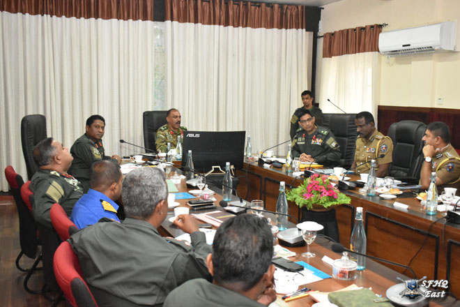 උතුරු මැද සහ නැගෙනහිර පළාත්වල ඉදිරි උත්සව සමය සඳහා ආරක්ෂක විධිවිධාන පිළිබඳ සාකච්ඡාවක් 2025 දෙසැම්බර් 19 වන දින ආරක්ෂක සේනා මූලස්ථානය (නැගෙනහිර) ආඥාපති මේජර් ජෙනරාල් ජේ.එස්.බී.ඩබ්ලිව්. පල්ලේකුඹුර, ආර්ඩබ්ලිව්පී, ආර්එස්පී, එන්ඩියු, පීඑස්සී, යන ජ්යෙෂ්ඨ නිලධාරිගේ ප්රධානත්වයෙන් පැවැත්විණි.