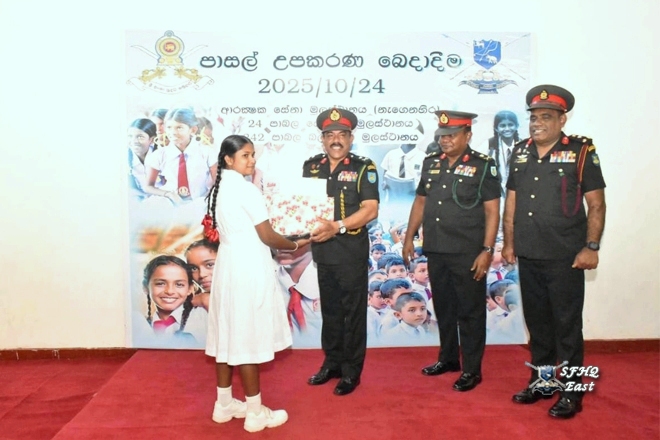 ආරක්ෂක සේනා මුලස්ථානය (නැගෙනහිර) ආඥාපති මේජර් ජෙනරාල් ජේඑස්බීඩබ්ලිව් පල්ලේකුඹුර ආර්ඩබ්ලිව්පී ආර්එස්පී එන්ඩියු පීඑස්සී ගේ සංකල්පයකට අනුව සහ 24 පාබල සේනාංකයේ සේනාංකාධිපති මේජර් ජෙනරාල් කේඩබ්ලිව් ජයවීර යූඑස්පී පීඑස්සී ගේ මඟ පෙන්වීම යටතේ, 242 පාබල බලසේනාව විසින් 2025 ඔක්තෝබර් 24 වන දින අම්/පානම මහා විද්යාලයේදී ප්රජා ආධාර වැඩසටහනක් පවත්වන ලදී.