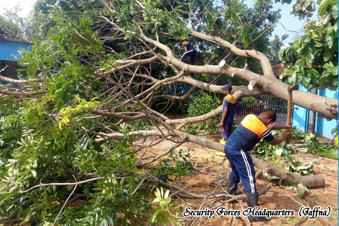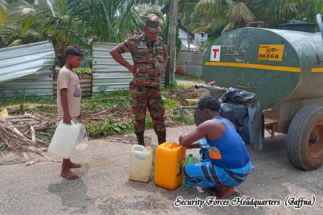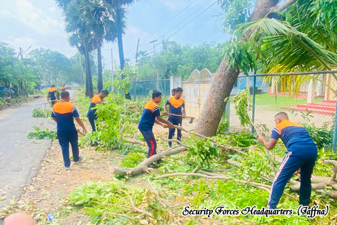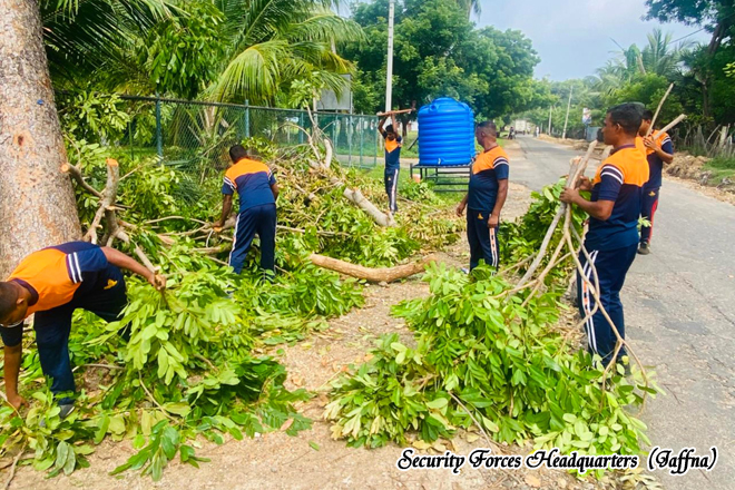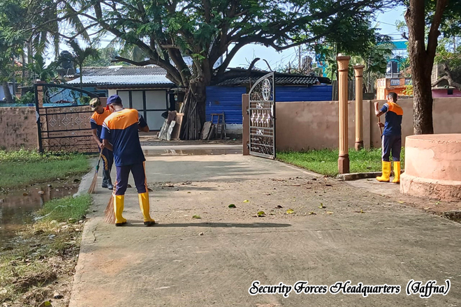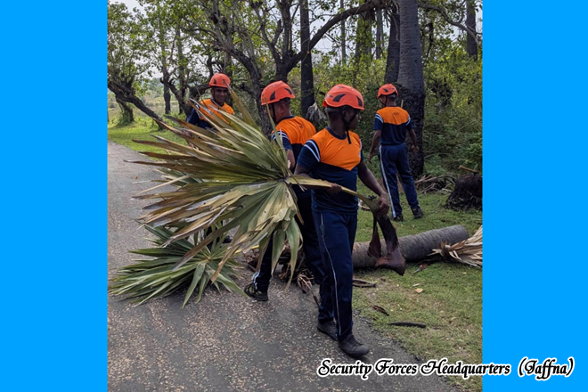 Troops of the 51 Infantry Division under Security Force Headquarters (Jaffna) continued to provide extensive humanitarian assistance to communities affected by Cyclone Ditwah and adverse weather conditions across the Jaffna Peninsula on 2 December 2025. Soldiers from all three brigades under command conducted diverse relief operations, including infrastructure restoration, drinking water distribution, cleaning programmes and community support activities.