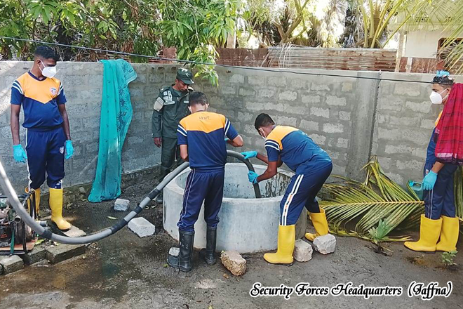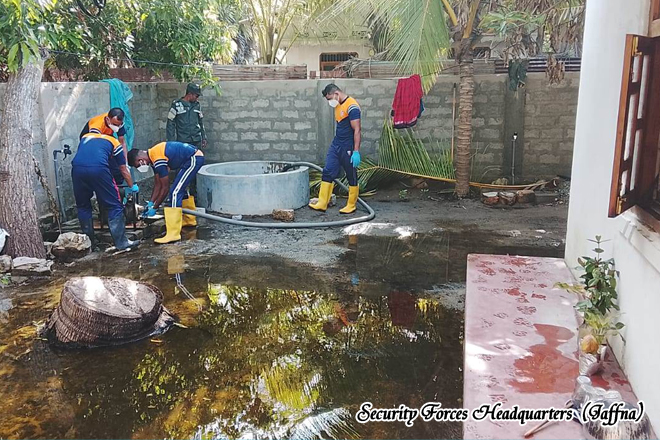 Troops of the 51 Infantry Division under Security Force Headquarters Jaffna continued their community assistance operations across the Jaffna Peninsula on 6 December 2025, marking the fourth consecutive day of sustained CIMIC oriented activities amidst the aftermath of Cyclone Ditwah and the prevailing adverse weather conditions. All three brigades under command remained actively engaged in supporting affected communities through water distribution, well cleaning and restoration operations, religious site cleaning programmes and the rehabilitation of educational facilities across the Division area of responsibility.