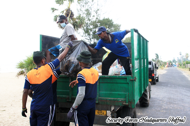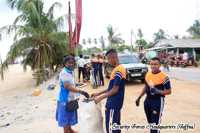 The troops of 52 Infantry Division, joined hands with the Divisional Secretariat - Point Pedro, Sri Lanka Police, Urban Council Point Pedro, Urban Council Valvattithurai, Pradeshiya Saba - Point Pedro, Divisional Hospital - Manthikai, Public Health Inspector Office - Point Pedro, Fisheries Associations, Trade Association and the local civilian community to restore the natural beauty of the Point Pedro Beach and promote environmental awareness. Further, School Principals, Teachers and Students from schools in Point Pedro area also attended for the Awareness programme.