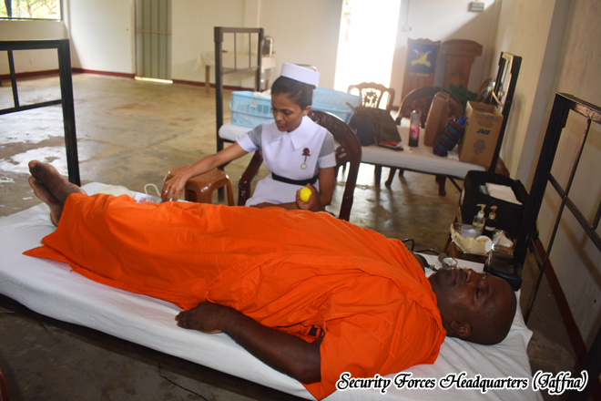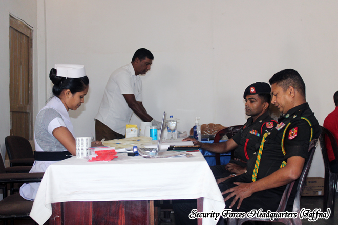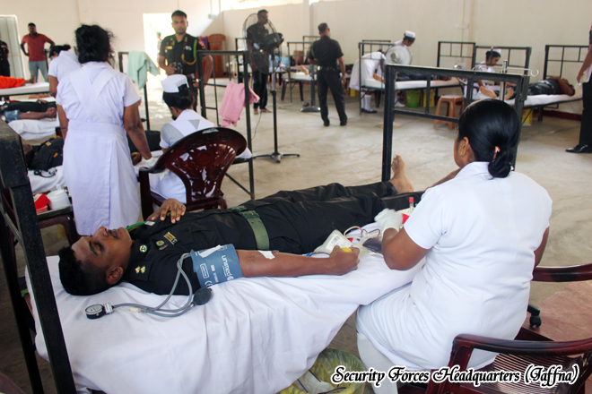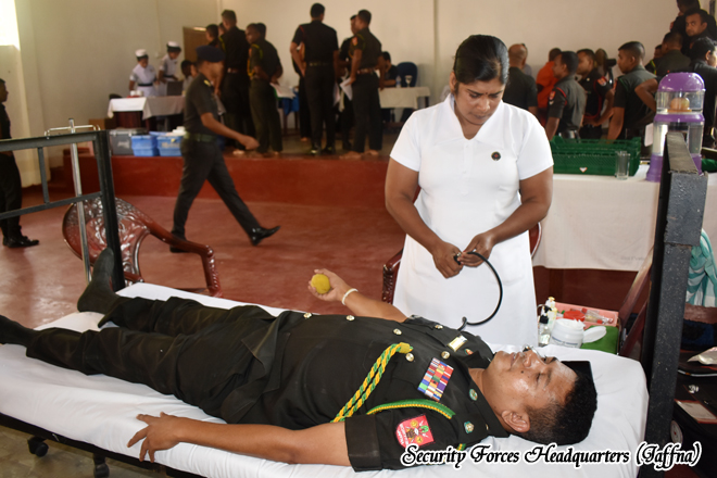 A total No of 96 military personnel, and venerable Nawagamuwe Dhammananda thero were donated their blood to replenish the much needed blood requirement in the area. Officers and Other Ranks from HQ 55 Infantry Division, 551, 552, and 553 Infantry Brigades, 7 SLLI, 6SLSR, 10 GR, 11(V) GR, 2 SLNG and 14 SLNG were participated in the program.