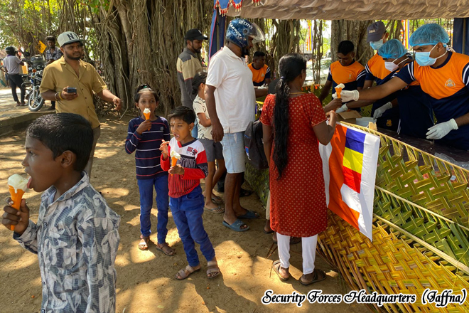 In line with the Vesak Poya Day, 552 Infantry Brigade organized an Ice Cream dansela at Ponnakary Junction on 12 May 2025. The event was organized under the visionary leadership of Major General YABM Yahampath RWP RSP ndu psc, Commander Security Forces, Jaffna and guidance of General Officer Commanding, 55 Infantry Division and under supervision of Commander, 552 Infantry Brigade.